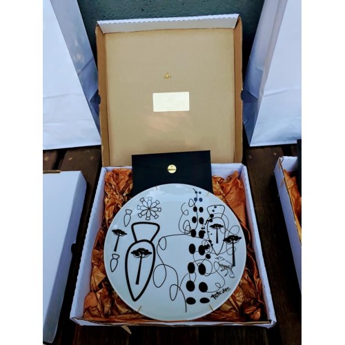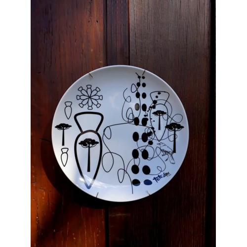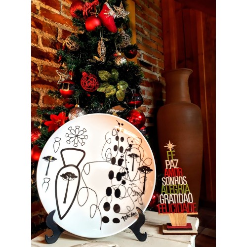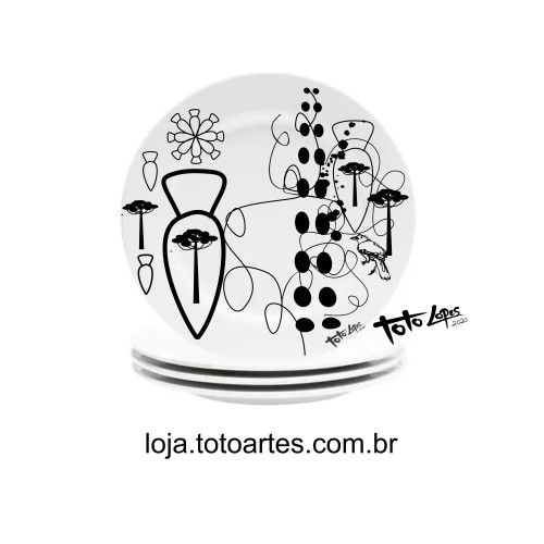 Prato de porcelana decorativo, com estampa localizada feito pelo artista plástico Toto Lopes, que também podem ser usados como pratos para servir alimentos. Separe um lugar especial para estas peças versáteis e de refinado bom gosto, para compor sua casa nos melhores momentos. Cuidado especial: evite higienizar em máquina de lavar louça, para preservar a estampa.